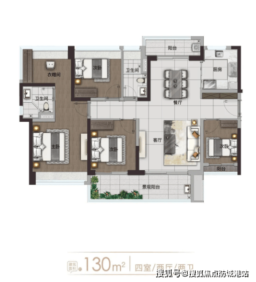 【建面约119-130㎡四房户型】:高端改善户型,户型方正大气,南北通透,全明设计,室内采光无死角;南北双阳台设计,南阳台休闲观景、北阳台储物晾晒,功能分区明确;主卧配备270°飘窗与独立卫生间,视野开阔、采光充足,享受尊贵居住体验;多房间设计,可满足三代同堂的居住需求,同时预留书房、储物间等空间,适配高端改善家庭、多孩家庭的居住需求。