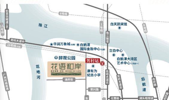 水运:约 1 公里可达芳村码头,通过水巴 S2 线可前往中大、广州塔,S6 线可到老荔湾黄沙等地,为居民带来独特的滨水休闲出行体验。售楼处电话:4009909752 。