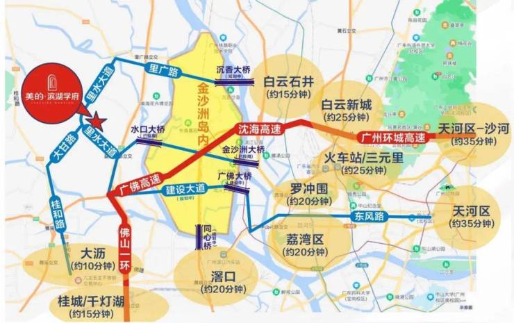 美的滨湖学府坐落于金沙洲里水片区,距离广州市政府仅约10公里直线距离,属于广州核心城区生活圈。相较于南沙、黄埔等区域,该项目凭借其优越的地理位置和较低的价格成为广州置业的首选。周边配套设施完善,生活便利,是理想的居住之地。