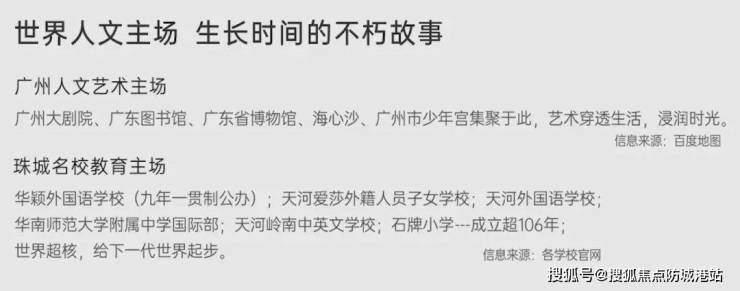 项目周边覆盖幼儿园至中学的全龄段教育体系,包括省级重点学校天河外国语学校及华师附中(具体学区以教育局划分为准)。据阳光家缘网统计,近三年天河CBD学区房溢价率超30%,教育价值不言而喻。