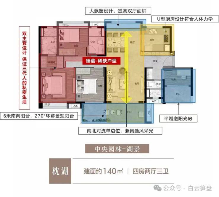 首开·保利·云湖壹号的产品力旨在满足从刚需到改善的全龄段家庭需求。所有产品均采用精装交付,预计将选用国际一线品牌,并融入智能家居系统。目前在售房源分为建面约80㎡、92-96㎡、111-140㎡三大类,均拥有极高的产品价值。