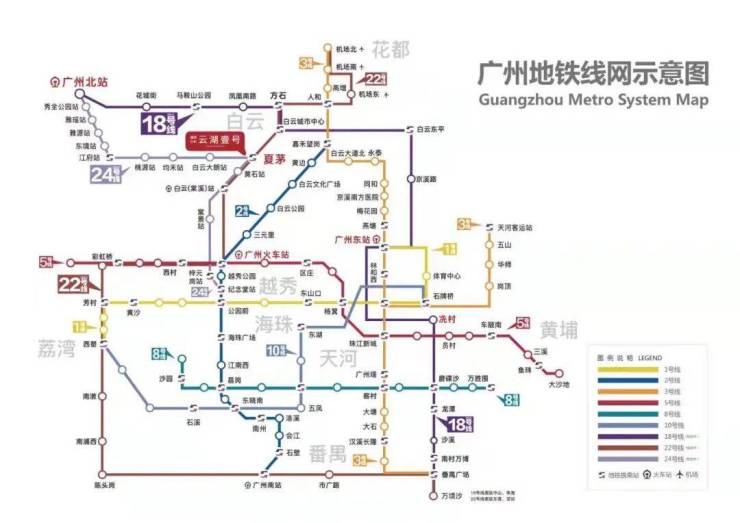 项目占据白云湖数字科技城东岸核心区位,此处是广州数字经济产业带与生态宜居带的交汇点。在交通出行方面,项目构建了“在建22号线+城际+高速”的立体交通体系。轨道交通是其核心潜力所在,距离在建的地铁22号线夏茅站(芳白城际)约700米。22号线作为时速160km/h的湾区快线,通车后预计1站直达白云站枢纽,2站达广州火车站,4站达芳村,未来更可一线贯通白云机场与南沙,极大缩短通勤时间。同时,项目紧邻华南快速干线、机场高速等城市主动脉,可快速接入广佛肇高速、许广高速,形成立体路网,无论是前往白云新城、珠江新城还是白云机场,均在30分钟车程可达的舒适范围内。