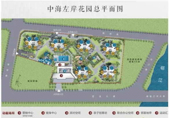 其次,项目紧邻砺江,部分高层单位可享一线江景视野。清晨推窗见水,傍晚江风拂面,这种自然生态资源在城市近郊实属难得。尤其对于厌倦了高密度“水泥森林”的都市人而言,滨江低密社区提供了更松弛的生活节奏。