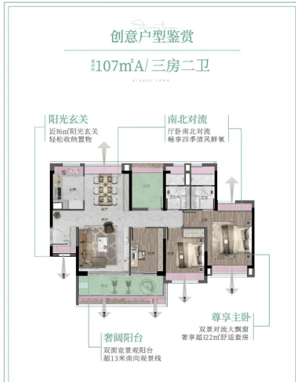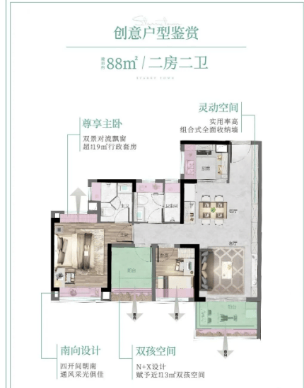 在售户型包括 88㎡、107㎡、125㎡等多种选择,均注重实用性与采光。如 88㎡户型罕见四面宽且三卧室朝南,超 11 米景观线;107㎡户型有南向观景玄关、双面宽观景阳台等;125㎡户型 4.5 开间朝南,客餐厅南北对流,实用率超高,满足不同家庭结构的需求。