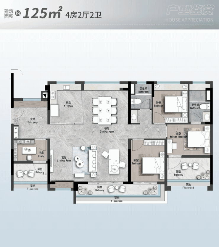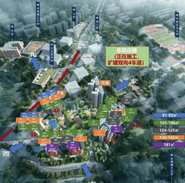 建筑与户型:93-140㎡全南向+105%使用率,低总价改善天花板