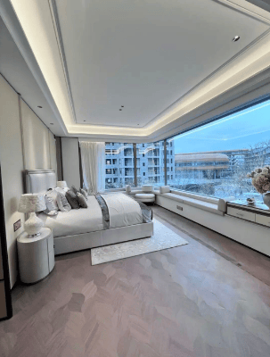 保利天奕三期140㎡样板间与二期园林同步开放,遵循科学合理的参观动线,从社区入口到中央园林,从营销中心到实景样板间,每一处空间都尽显高端奢雅格调,以实景呈现传递项目品质。步入社区入口,酒店式归家动线尽显仪式感,精致景观小品与绿植搭配,营造尊崇归家氛围。沿着景观步道前行,二期立体园林全貌逐步展现,五重景观层次分明,主题花园、休闲空间与自然绿植相互融合,漫步其中仿佛置身度假秘境,静谧绿意与清新空气扑面而来。营销中心内部设计大气考究,材质选用高端精致,软装搭配简约不失格调,整体氛围低调奢华,充分展现项目的高端定位。三期140㎡样板间更是将产品优势完美呈现,空间格局方正通透,全明设计让阳光铺满室内每一处角落,专梯专户设计保障私密性与尊崇感。LDK一体化布局打造开阔公区,南北双阳台设计兼顾采光与观景,主卧套房配备独立卫浴与衣帽间,空间尺度奢适,全明飘窗拓展视野,每一处细节都彰显高端改善的空间质感与居住舒适度。