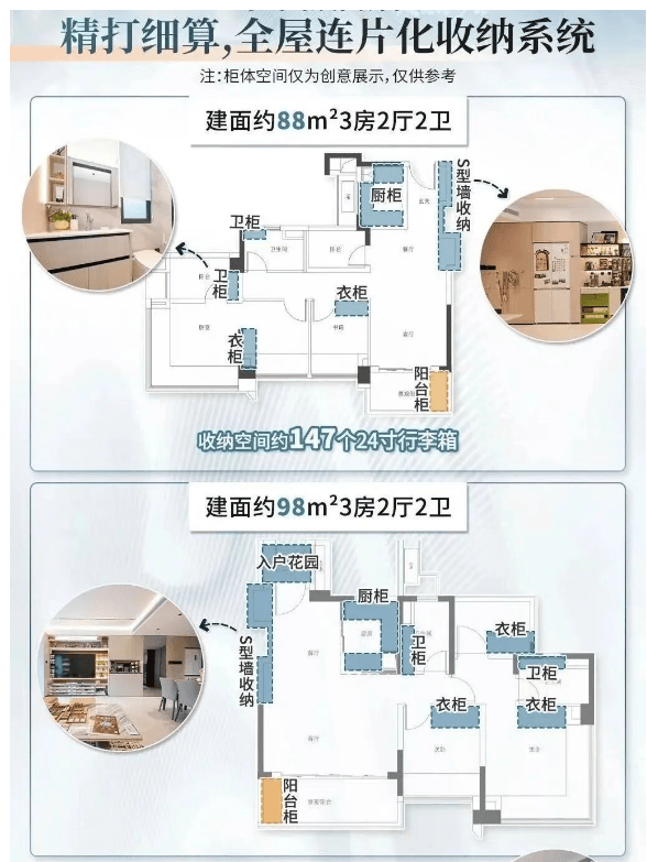 首期推出的两栋住宅分别为47层和31层,全部采用南向设计,确保每户都有充足的自然光照。主要户型包括113平方米、98平方米和88平方米三种,分别适合不同家庭结构的需求。所有户型均精心设计,动静分区合理,空间利用率高。