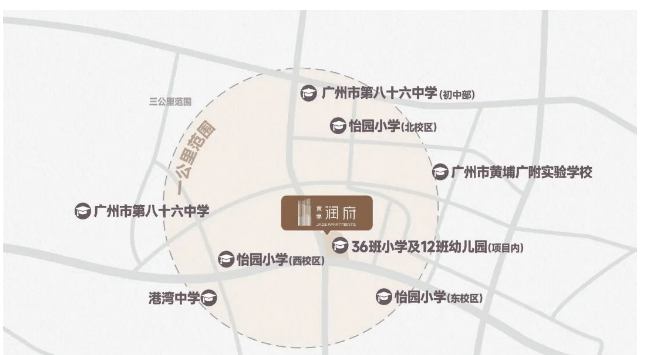 黄埔润府不仅自带一所12班幼儿园,还签约了怡园小学作为其配套的36班小学。怡园小学历史悠久,师资力量雄厚,并有独特的“青蓝工程”培养新教师,确保教学质量。周边一公里内还有多所优质学校,如广大附中黄埔实验学校和广州市八十六中学等,形成了浓厚的学风氛围。