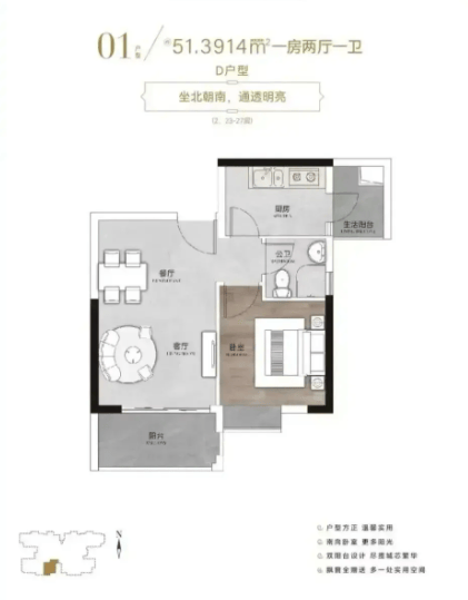 51㎡1 室 1 厅:194 万起 单身 / 新婚过渡优选