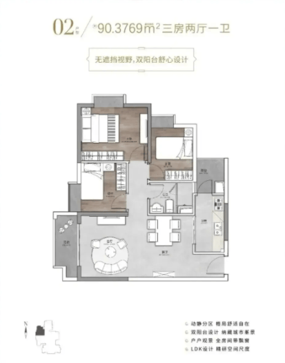 90㎡3 室 2 厅:328 万左右 三口之家性价比之选