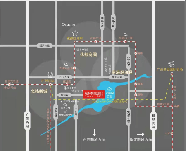 南驰·都湖国际地理位置优越,毗邻白云机场和广州北站,为居民提供了便捷的出行条件。此外,社区周边有地铁9号线花果山公园/花城路站,方便快捷地连接城市各主要区域。不仅如此,社区还靠近广州首个市内免税综合体以及广清高速新华出口,确保您无论是前往市中心还是其他重要地点,都能享受顺畅无阻的旅程。