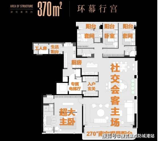 项目主打建面约300㎡四房三卫户型,设计亮点包括: