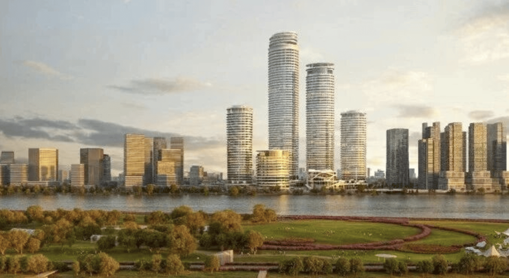 答:项目绿化率30%,容积率5.8,整体规划科学合理,采用全圆柱体建筑造型,保障空间通透与景观通透性;内部配备环幕天际泳池、景观园林,下楼即享滨江生态公园,未来周边还有世界级生态公园岛,居住舒适度极高,实现人与自然的和谐共生。