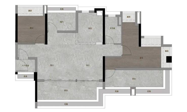 建面约105㎡四房则进一步跃升居住尺度。五开间朝南、南北双阳台形成穿堂风,全屋通透感极佳。入户玄关避免“一箭穿心”,餐厅居中串联厨房与客厅,强化家人互动。特别设置的“X空间”可灵活用作书房、儿童活动区或兴趣角,满足多代同堂的多样化生活场景。双面宽跑道阳台兼具家政与休闲功能,实用性与仪式感兼备。