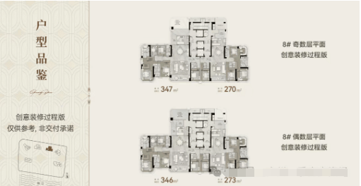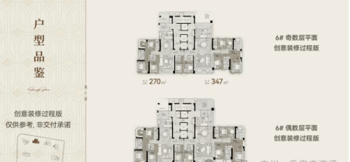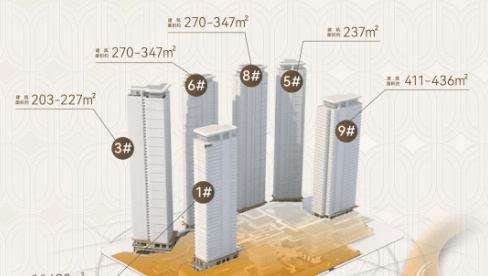 中间50层的两栋,镜像排布,面积约为273-347平方米;