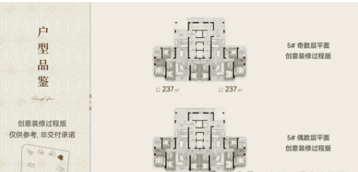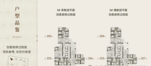 靠珠江一侧的户型面积约为203-227平方米,而另一侧则为约237平方米;