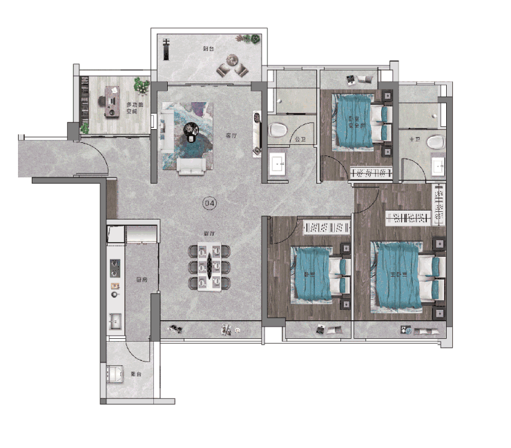 建面约118平方米四房两厅两卫:经典的舒适改善四房。实现四开间朝南,拥有超25平方米的阔绰客厅,连接约6.6米的宽景阳台,采光与视野极佳。主卧套间面积超22平方米,带独立卫浴,私密性与尊崇感兼备。