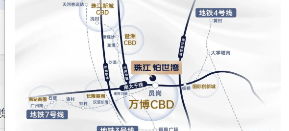 项目构建了“7纵5横5地铁6隧道”的全维度立体交通路网,实现全城快速通达。轨道交通方面,距离地铁7号线员岗站直线距离约500米,仅需1站即可抵达万博CBD,4站直达珠江新城,并可便捷换乘2、3、4、18号线,30分钟生活圈覆盖广州核心区域。自驾出行同样高效,纵向依托广州绕城高速、南沙港快速、华南快速等七大主干道,横向连接沿江路、南大干线、汉溪大道等五大动脉,加之金光东隧道及规划中的多条过江隧道,轻松打破区域壁垒,畅行无阻。