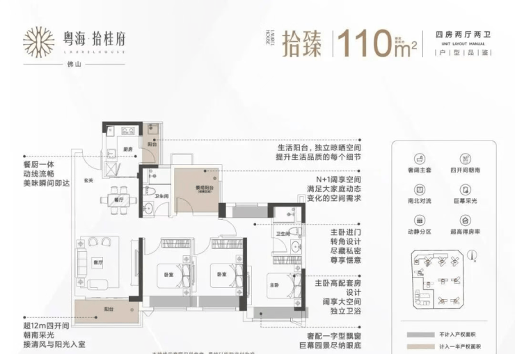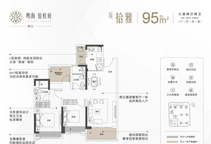 项目主力推售建面约95–140㎡三至五房,兼顾刚需与改善需求。95㎡三房(拾雅)实现三开间朝南、双阳台、超高得房率;110㎡四房(拾臻)配置奢阔主卧、四开间朝南、N+1创意空间;125㎡四房(拾萃)更设独立入户花园、U型厨房、三面采光;140㎡五房(拾境)则以全屋南北对流、三面采光、宽景飘窗满足多孩家庭或三代同堂需求。目前2栋与9栋为准现楼发售,其中2栋南向中高层可直望东平河景,北向俯瞰中央园林,景观资源稀缺。作为禅城主城少有的双地铁、高配建、国企开发的高品质项目,粤海拾桂府以产品力与地段价值双重加持,成为穿越周期的硬核资产之选。