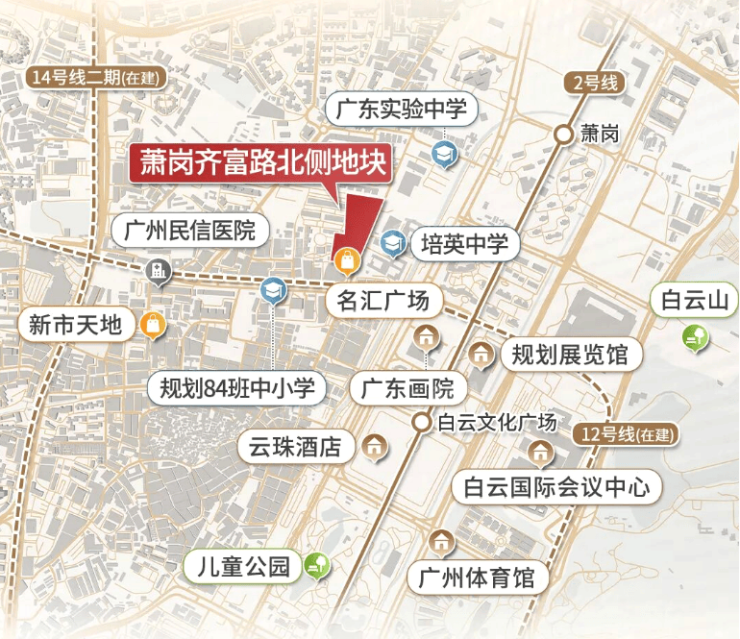 在公共交通方面,项目的地铁配套更是亮点十足。距离项目较近的有地铁2号线和12号线的白云文化广场站。2号线作为广州南北向的交通大动脉,串联起了广州南站、广州火车站等重要交通枢纽,以及越秀公园、纪念堂等热门景点。12号线则是广州轨道交通线网中的一条重要线路,建成后将有效缓解中心城区的交通压力,并连接多个重点区域。