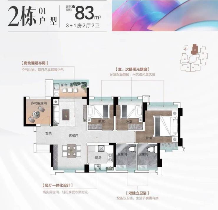云麓花城首推建面约67–97㎡三至四房实用户型,采用紧凑而合理的空间布局,确保每一寸面积都被充分利用。所有户型均为南北通透设计,采光通风良好,居住舒适度高。即使是小面积户型也能实现多功能分区,满足不同家庭结构的需求。