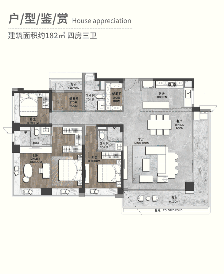 建面约182平四房,一进去,就有“哇塞”的感觉,仪式感满满。