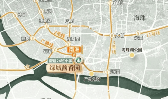 项目落子海珠湾心,紧邻广佛线与地铁2号线交汇的南洲站,步行仅约50米。从这里出发,3站抵达客村商圈,5站直达珠江新城CBD,7站畅达琶洲会展核心区,8站覆盖万博、金融城乃至白鹅潭等城市重点发展板块,通勤效率极高。