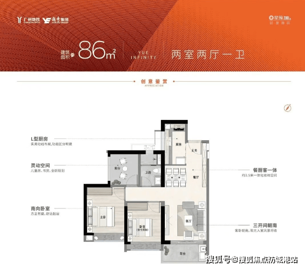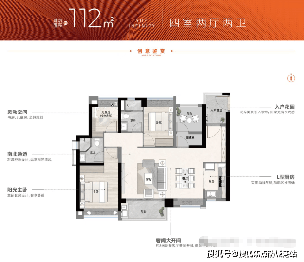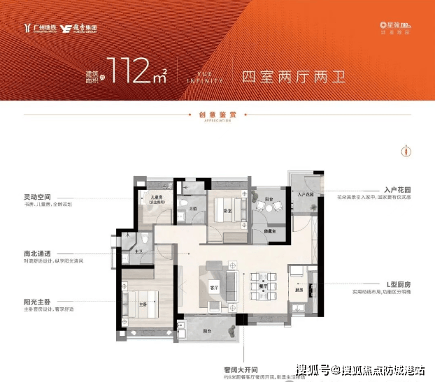 项目主推98-107㎡复式(层高5.8米)与86-112㎡平层户型,实测得房率超85%,复式产品通过“买一层享两层”设计,实际使用率达150%。例如,98㎡复式可改造为四房三卫,满足三代同堂需求;112㎡平层采用LDKG一体化设计(客厅、餐厅、厨房、阳台一体),四开间朝南,采光面达12米。