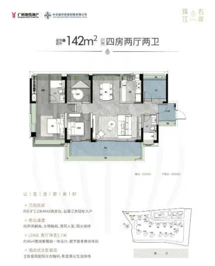 建面约142㎡四室两厅两卫:空间尺度更阔绰,适合三代同堂家庭,低楼层620万起;