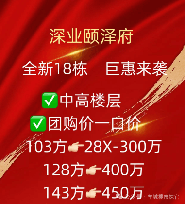 深业颐泽府现楼持续热销,建面约103-190㎡瞰江四房大平层,均价3.4-4万元/㎡,剩余房源有限,190㎡楼王臻席递减,欲购从速。项目所有销售信息均以官方发布为准,任何非官方渠道(个人微信、非认证网站、中介机构)发布的房源、价格、优惠等信息均不代表开发商立场,谨防虚假信息、诈骗行为及中介加价。