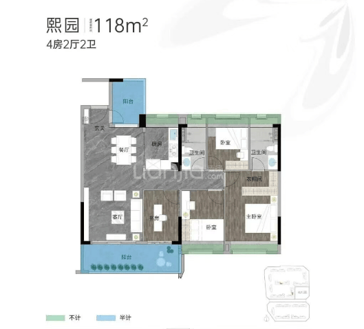 最后是118平方米的四房两厅两卫户型,作为项目的顶配改善产品,它采用了大气的横厅设计,配合南北双阳台对流,营造出豪宅般的空间尺度感。主卧配备了独立衣帽间,提升了主人的居住尊贵感。这款户型在空间尺度与居住舒适度之间找到了完美的平衡点,非常适合地缘性改善客群置换升级。所有户型均体现了城发集团对人居细节的极致追求,无论是动线规划还是功能分区,都经过了反复推敲,旨在为业主打造最舒适的居住体验。