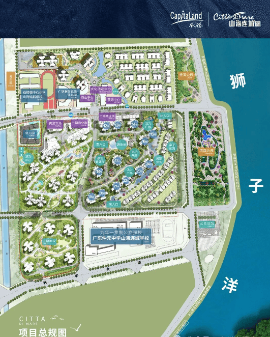 家楼下 5 分钟生活圈,20000㎡社区商业、菜市场开业,商铺营业。40 米近海,1.5 公里海岸线,16 万㎡新加坡式园林,3600㎡文化运动中心,配套丰富。