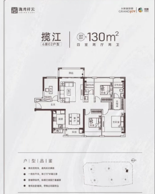 建面约130㎡阔境改善四房,面向高阶改善家庭打造,超大面宽设计,全屋多面采光,通风对流效果极佳,LDK一体化客餐横厅布局,打破空间壁垒,客厅、餐厅、观景阳台无缝衔接,构筑开阔的公共活动空间,无论是家庭日常团聚,还是亲友聚会宴请,都能从容适配。户型配备阔景全景阳台,直面社区园林与江岸景致,日常休闲观景、养花种草随心切换;主卧打造独立套房设计,配备独立卫浴与静谧飘窗,私享专属休憩天地,提升居住奢华感与私密性;多次卧灵活规划,可作为儿童房、老人房、书房、储藏室,功能可塑性极强,满足二孩家庭、三代同堂的居住需求,长远居住无压力。全系户型整体空间利用率优化到位,格局通透方正,景观视野优越,从刚需刚需上车到改善品质升级,全方位覆盖多元置业需求。