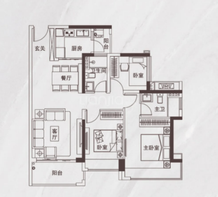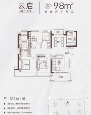项目打造多款建面约96㎡、98㎡、130㎡等多元主力户型,覆盖刚需三房、刚改三房、改善四房全面积段产品,适配单身青年、三口之家、二孩家庭、三代同堂等不同结构家庭,户型设计贴合佛山本土人居习惯,空间布局合理,通透舒适,兼顾实用性与居住仪式感。建面约96㎡精致三房户型,作为刚需与首改核心主力产品,整体格局方正规整,全明空间设计,全屋采光通透,合理规划动静分区,有效区分休憩区域与活动区域,减少日常动线干扰。南向景观阳台衔接客厅,延伸室内空间尺度,拓展观景视野,主卧配备独立休憩空间,私密性极强,次卧空间尺度适中,满足儿童房、书房、客房等多元功能改造需求,小户型低门槛上车,轻松拥有城芯三房宜居生活。