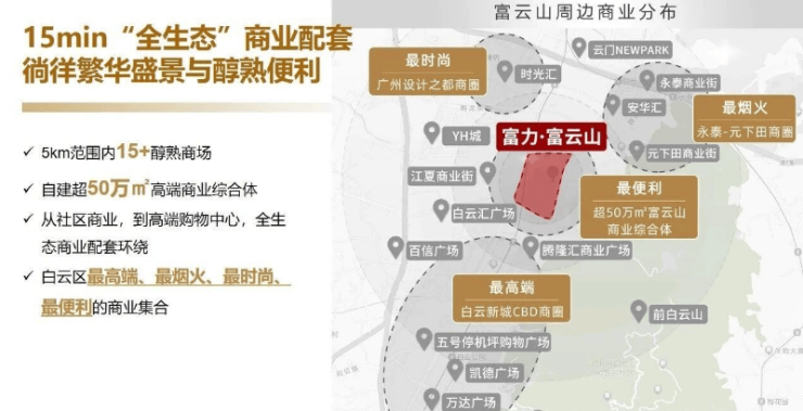 富力富云山位于白云新城的核心区域,紧邻白云大道,距离白云山仅60米,提供了独一无二的自然景观资源。项目周边拥有便捷的交通网络,包括地铁2号线江夏站和萧岗站,以及即将建成的广州白云站。