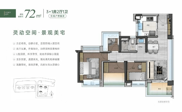 所有户型均采用精装修交付,使用率超高,特别是73平方米户型即可实现四房设计,非常适合刚需家庭。