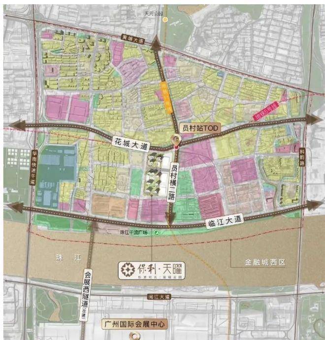 项目地理位置得天独厚,位于规划花城大道南侧,周边华南快速干线、黄埔大道中、临江大道及科韵路等主要交通干道环绕,交通便捷。地块东北侧距地铁 5 号线与 11 号线交汇的员村站仅 150m,通过这两条地铁线路,可轻松连通珠城、琶洲、天河北、白鹅潭等广州核心商务圈,交通通达性极强,为业主的日常出行与商务活动提供了极大便利。