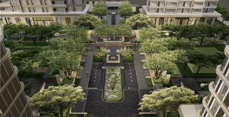 保利天曜总用地面积约 41300m²,总建筑面积约 124600m²,容积率南地块约 3.1 ,北地块约 3.8 ,共约 968 户,梯户比为两梯两户、两梯三户及两梯四户。小区以鎏金美学为风格导向,晶感外立面搭配玻璃幕墙,塑造珠江前航道全新豪宅天际线。精心打造约 330 米园林中轴,贯穿南北地块,营造 “一轴双园” 的中式对称美学,彰显东方尊崇韵味,为业主提供高品质的居住环境。