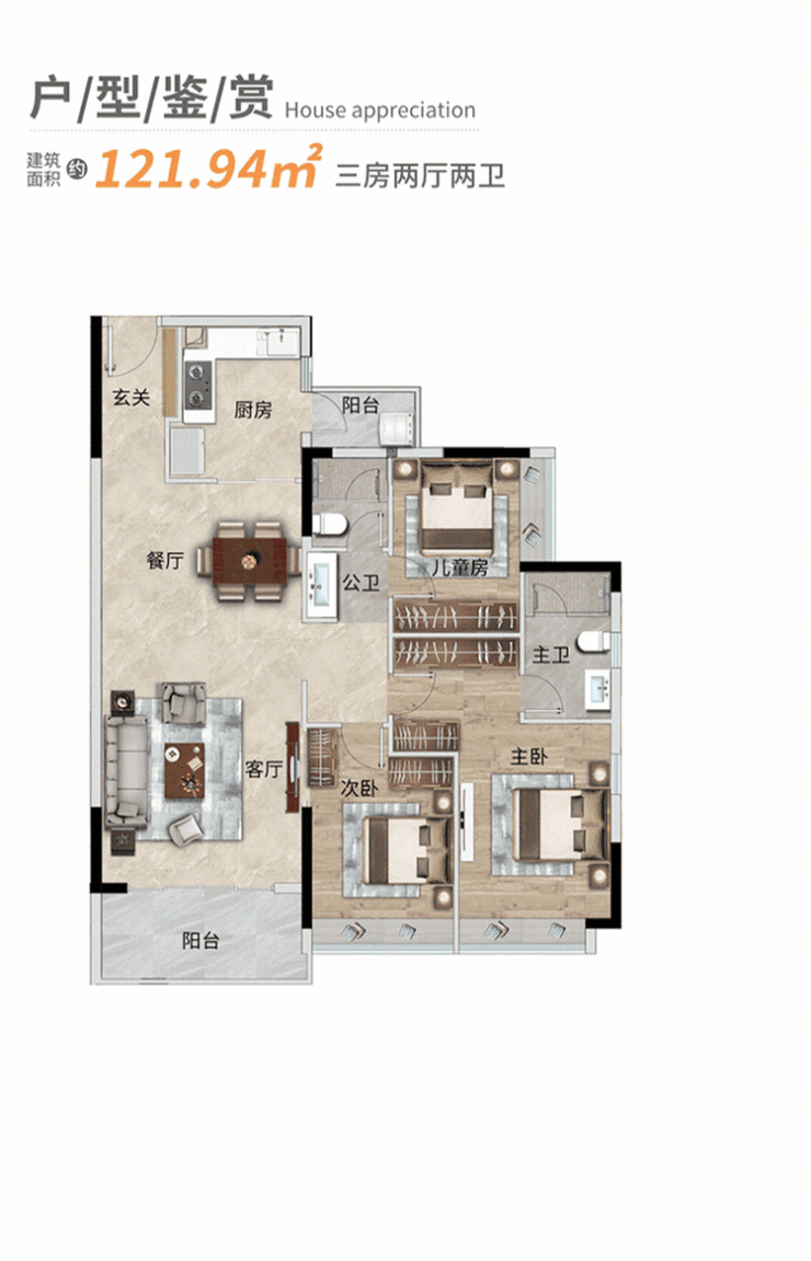 128㎡三房两厅两卫:该户型空间更为阔绰,客厅与餐厅的一体化设计,使公共空间更加大气。主卧套房设计,拥有独立卫生间和衣帽间,为业主提供舒适的居住体验。次卧和书房空间宽敞,可满足不同家庭成员的生活与学习需求。厨房采用 U 型设计,操作台面充足,烹饪更加得心应手。阳台面积较大,可作为休闲区域,摆放桌椅,享受阳光与美景。