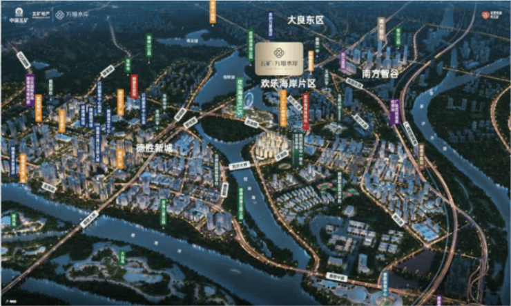 五矿万境水岸,是由世界500强央企中国五矿旗下五矿地产打造的约60万㎡滨水大城,位于顺德大良“区府东拓”战略的核心腹地——欢乐海岸板块。项目紧邻大湾区现象级文旅地标欢乐海岸PLUS,南面直面桂畔海、李家沙河与德胜河三江交汇,北望顺峰山公园与城市地标摩天轮,真正实现“背山面水、城芯藏园”的稀缺格局。作为板块内少有的准现房项目,五矿万境水岸不仅规避了期房交付风险,更以实景呈现兑现力赢得市场高度认可。2025年底至2026年初,项目进入集中交付阶段,销售热度持续攀升,成为广佛改善型买家关注焦点。其单价1.6万元/㎡起的定价,在同等江景资源与配套能级下,显著低于禅城、桂城等核心区域,性价比优势突出。