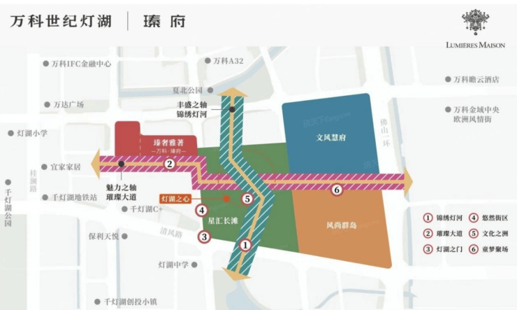 从项目本身来看,万科世纪灯湖体量约 645 亩,是千灯湖改造规划中最大且具备连片开发条件的项目。不同于以往单独操盘的模式,万科这次以 “大盘思维” 打造,围绕 “一心两轴四大片区” 规划六大城市核心场景,致力于构建一个亲近自然、童趣友好、魅力人文、高级烟火的生活新地标,为千灯湖板块的发展注入全新活力。