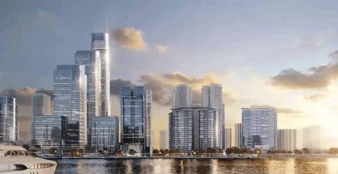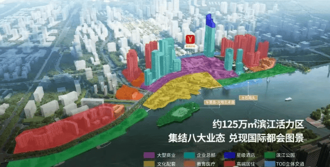 业态构成:大型商业、企业总部、星级酒店、滨江公园、文化艺术中心、教育医疗配套、高端居住及TOD立体交通等八大业态