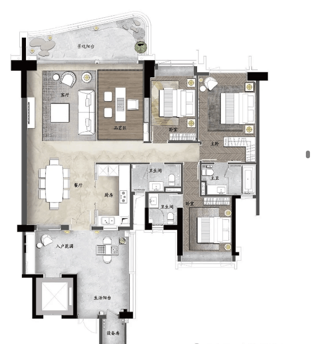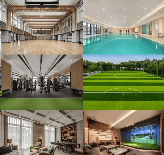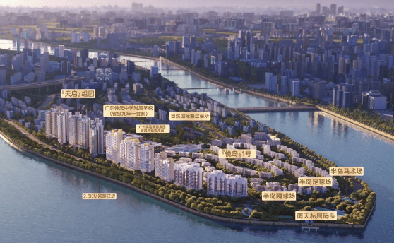 生活配套尽显高端品质与圈层特色。城芯 800 亩低密环境,约 800 株珍稀小叶榕、2.3 公里浓荫江堤,270° 三江汇聚景观视野,平均约占地 440㎡/ 户的享用空间,下楼即享自然健康生活。家门口优质圈层配套丰富,打造岛尖半岛体育公园,拥有广州首个岛尖马术场,与国际小马俱乐部等达成合作开设青少年马术培训课程,还有半岛足球场、网球场、攀岩场等。自然健康生活平台【天 CLUB】由亚洲飞人苏炳添担任首席荣誉官,以会员制打造,内部设有图书馆、儿童乐园、泳池、多功能综合球馆等设施,为业主构建自然健康圈层生活。
