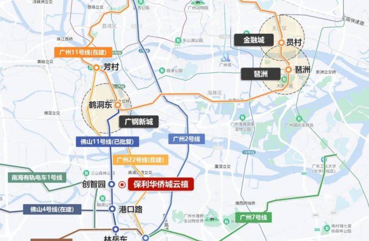 项目地处广佛都市圈几何中心,行政隶属于佛山桂城街道,却与广州南站直线距离仅3公里,10分钟直达广州南站,30分钟通达珠江新城。作为“广州南站-佛山新城-千灯湖”三角枢纽的核心节点,项目东接广州南站商务圈,北邻千灯湖金融高新区,西连佛山新城,形成“15分钟广佛生活圈”。2025年三山新城板块在售均价约3.5万元/㎡,较千灯湖核心区低22%,较广州南站周边同品质住宅低35%,价格梯度优势显著,是广佛双城通勤族的理想选择。