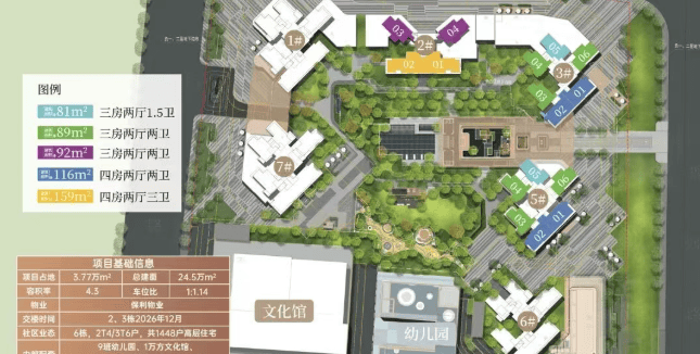 中央公馆总占地约3.77万㎡,总建面约24.52万㎡,容积率4.3,规划1448户,车位比高达1:1.1,充分保障居住舒适度与停车便利性。