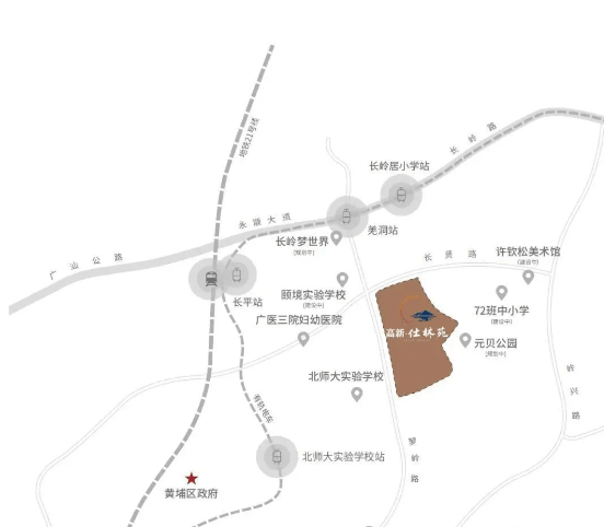 项目的交通优势十分突出,立体交通网络覆盖,满足不同出行需求。轨道交通方面,项目直线距离地铁 21 号线长平站约 800 米,步行 10 分钟左右即可抵达。从长平站出发,1 站可到达黄埔区府水西站,2 站直达万达广场苏元站,5 站抵达天河智慧城站,30 分钟内可畅达天河核心商圈,实现 “工作在天河,生活在长岭” 的理想状态。