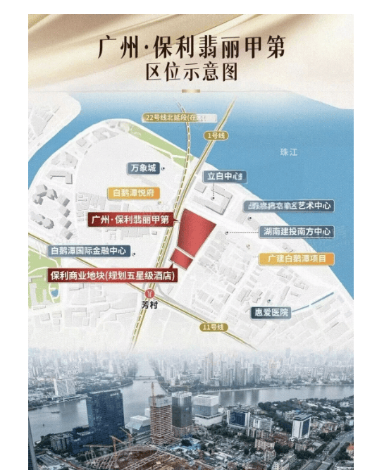 保利翡丽甲第地理位置优越,距离地铁1号线芳村站仅约200米,方便快捷地连接城市的各个角落。未来还将汇聚22号线、28号线,形成四线交汇的超级交通枢纽,极大地提升了出行便利性。此外,周边的公交线路网络发达,无论是前往珠江新城还是其他重要商业区,都能轻松实现快速通勤。