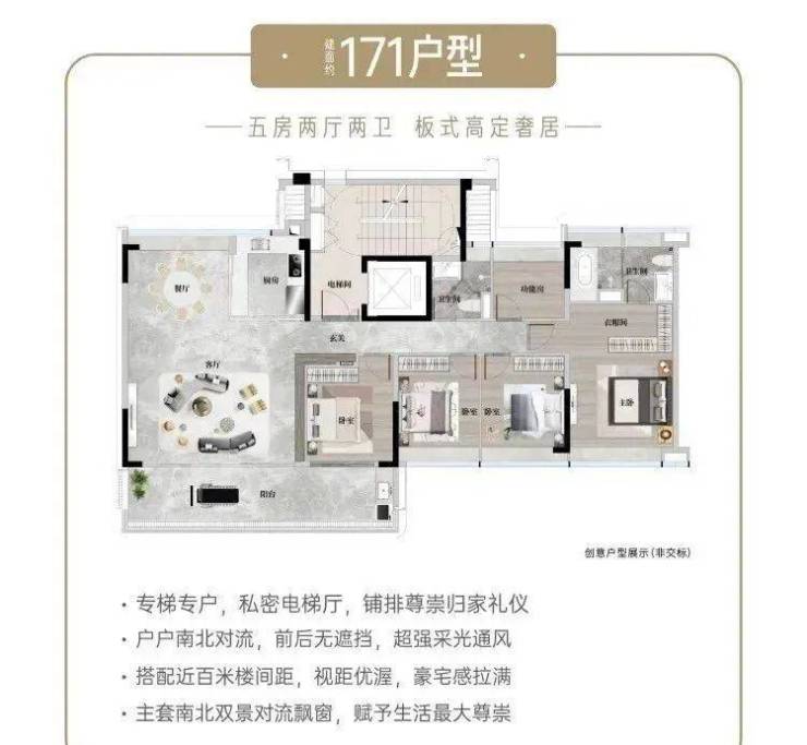 主力户型与装修:纯板式专梯入户,塔尖生活的空间哲学