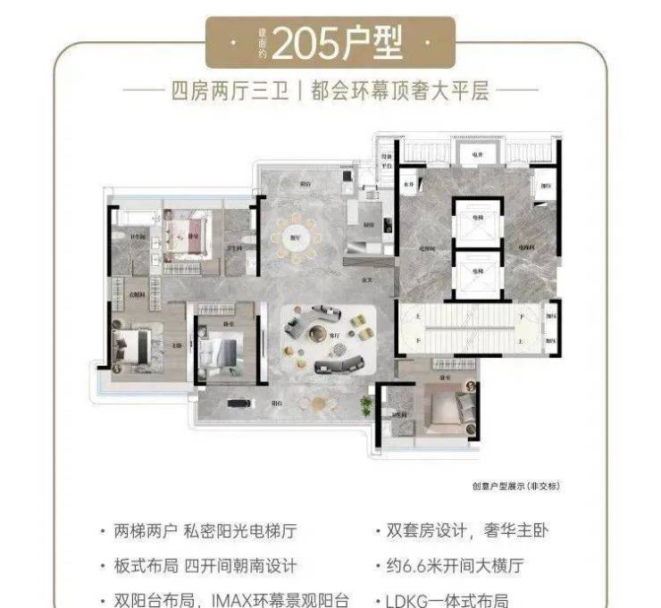 项目全部为南向纯板式设计,户户通透,采光与通风俱佳。梯户比设计尊贵,多为一梯一户或专梯入户,得房率远超市场平均水平,装修标准严选国内外一线品牌,彰显品质细节。建面约128平方米三房两厅两卫,是改善入门的优选,三开间朝南,总价约614万元起,为年轻家庭提供了低门槛进阶高端圈层的机会。建面约140平方米四房两厅两卫作为主力户型,拥有约7.5米宽的阔景阳台,空间灵动,满足二孩家庭的成长需求。建面约171平方米五房两厅两卫,采用8层小高层专梯入户设计,私密性极佳,U型厨房与客餐厨一体化设计,是三代同堂的天伦之乐场。建面约205平方米四房两厅三卫,配备近9米宽的巨幕双阳台与双主卧套房,让长辈与晚辈各有天地。而建面约253平方米的四房两厅四卫大平层,则以奢阔的客厅面宽和带步入式衣帽间、浴缸的主卧,重新定义了云端之上的生活排场,高楼层更可将长隆景观与城市天际线尽收眼底。欲知更多户型细节,请致电售楼处:400-6681-567。