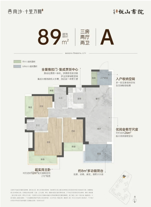 南沙十里方圆主打79-138平方米的三至四房全龄户型,适合不同家庭结构的需求。设计上注重生态场景与书香气质的融合,如32米宽麒麟祥瑞大门、130平方米酒店式归家双厅等特色元素,营造出一种既现代又充满文化气息的居住氛围。特别是三期组团“悦山书院”,通过现代手法复刻传统书院布局,迭代升级为现代东方书院式人文社区,让居民仿佛住在书院里。